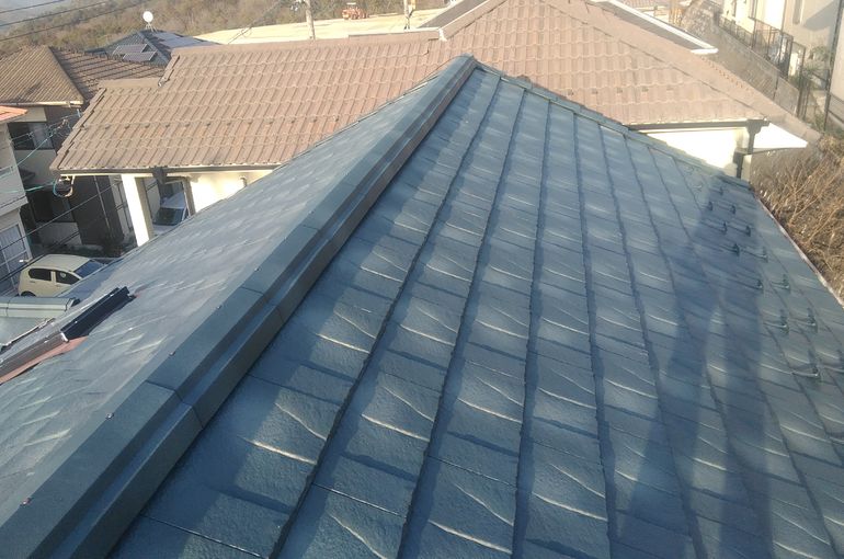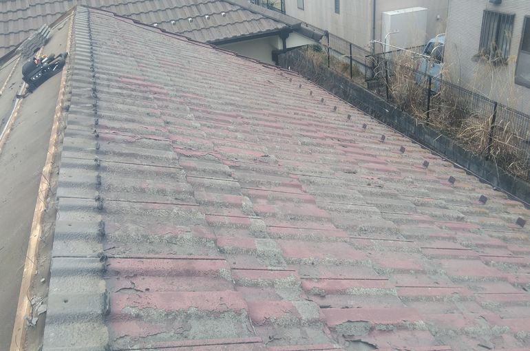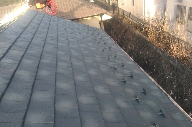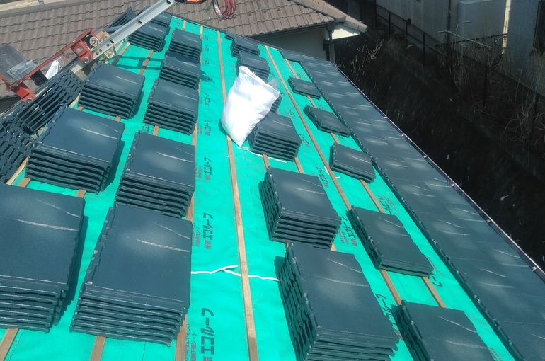 桟木を取り付けて、ルーガの瓦を運んで置いた状態。