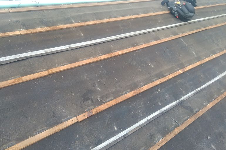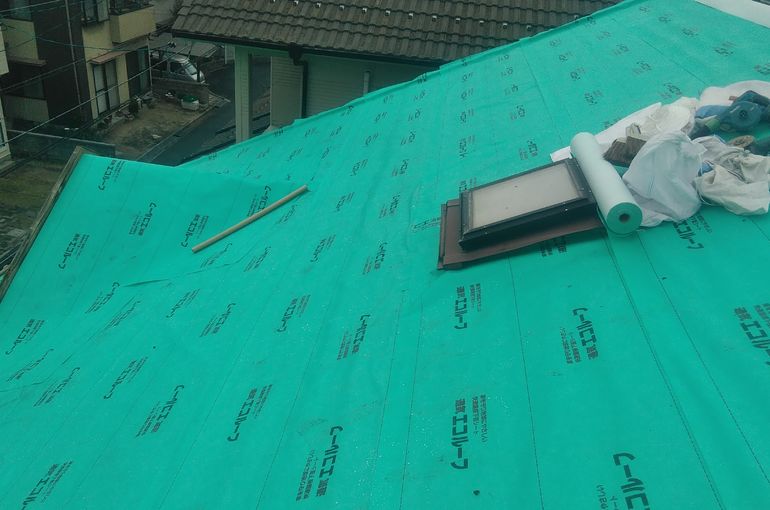 桟木を取って掃除をして、エコルーフィングをはりました。